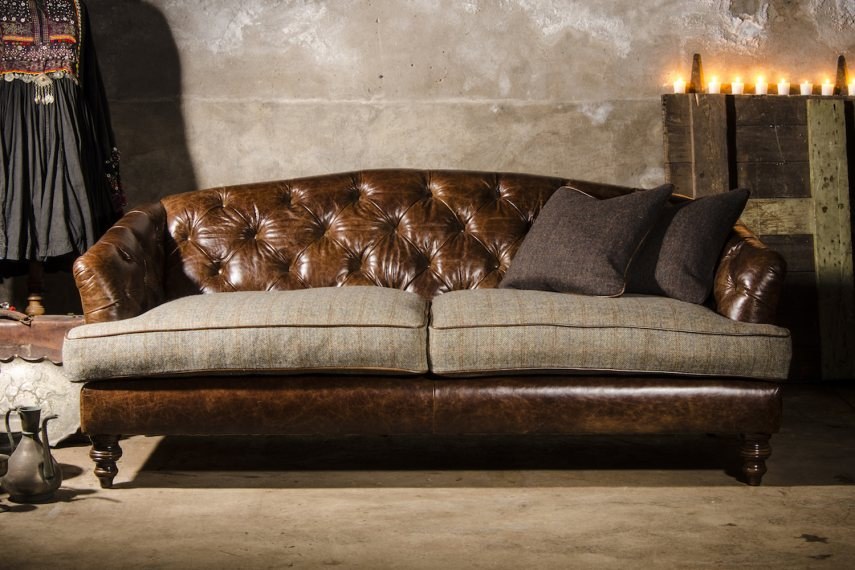 The Dalmore Midi Sofa (All Hide) is available in any of the leathers in the Tetrad Harris Tweed collection.