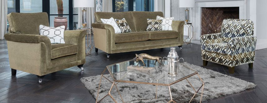 An exciting classic model that evokes the smooth lines and geometric shapes inspired by the interiors of the art deco era. Fleming combines luxurious comfort with opulent sophistication and style. Lustrous velvets and damasks, broken plain chenille’s and geometric accents in a palette of metallic colours lend themselves timelessly to both contemporary and classic settings.