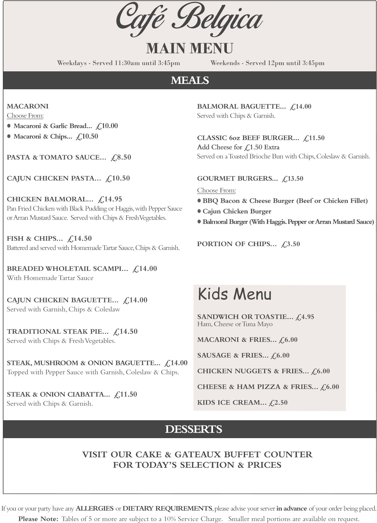 Cakes & Refreshments served until 4pm