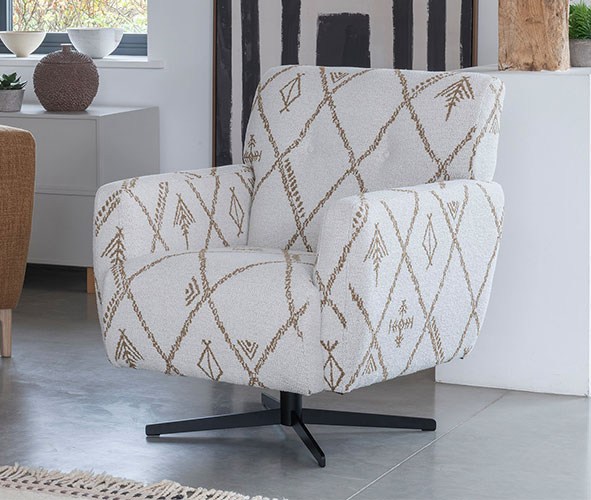 Inspired by Peru's vibrant artistic legacy, the Nova Swivel Chair by Alstons is part of a collection which showcases fabrics with intricate Andean patterns, organic hues, and contrasting textures.