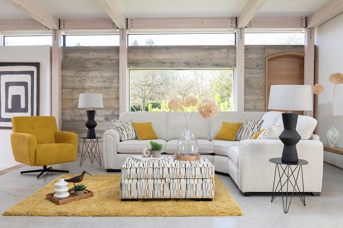 The range includes a versatile corner sofa with a single armless unit, offering flexible seating options to suit a variety of room layouts. A refined fabric palette features soft, sophisticated tones in richly textured chenille plains, complemented by globally inspired accent cushions. Each scatter cushion is fully reversible, allowing you to effortlessly switch to a clean, plain look whenever you wish.