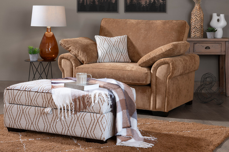 Available as sofas, snugglers, armchairs, accent chairs, and stools in rich, earthy chenille fabrics and bold geometric accents for that perfect rustic-chic vibe.